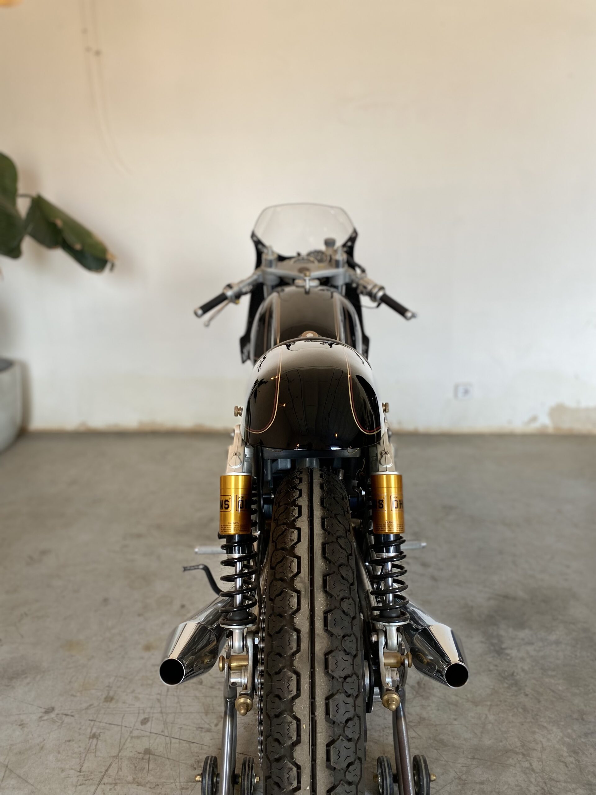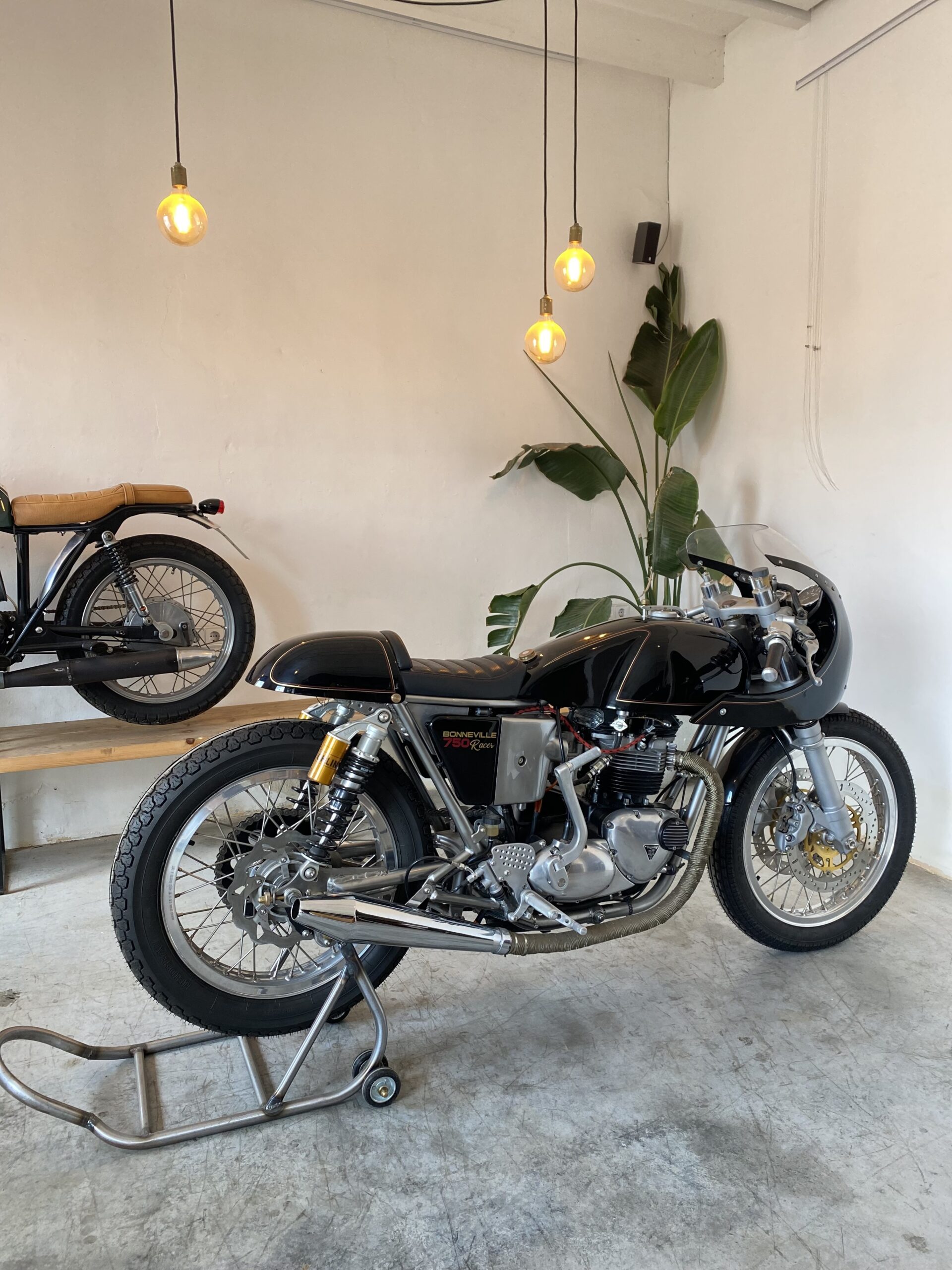 Esta Triumph Bonneville T140 de 750cc (1987) ha sido transformada en una auténtica café racer artesanal, respetando la esencia clásica de la marca y rindiendo homenaje a las motos de competición de los años 70.